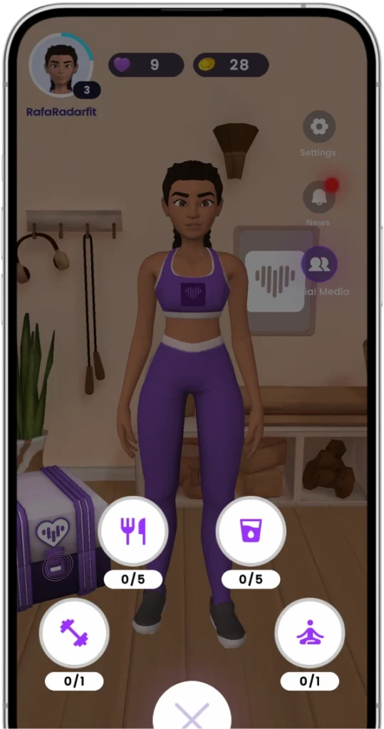 Com a Radarfit, seus colaboradores têm acesso completo a tudo o que precisam para adotar hábitos saudáveis: dieta personalizada, treinos, lembretes de hidratação e meditação. Além disso, eles podem acumular pontos e trocá-los por doações ou prêmios (sem custo para o colaborador), promovendo um estilo de vida ativo e saudável. Tudo isso com a gamificação como grande diferencial, tornando o cuidado com a saúde mais divertido e envolvente.