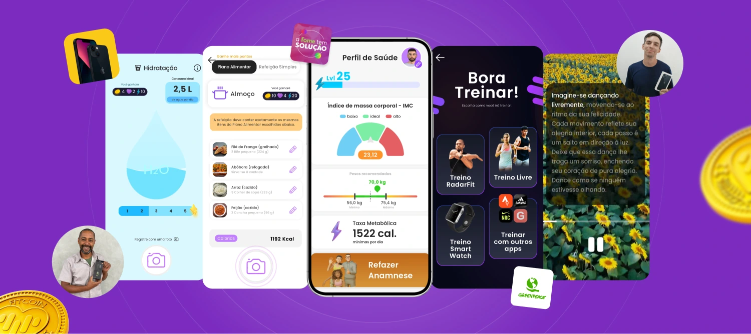 A Radarfit se destaca por oferecer uma solução completa e integrada, cobrindo não apenas atividades físicas, mas também saúde mental, alimentação saudável e hidratação — tudo em um único app. Além disso, nossa abordagem gamificada mantém os colaboradores engajados, motivados e recompensados, o que é um grande diferencial em relação a soluções isoladas.
